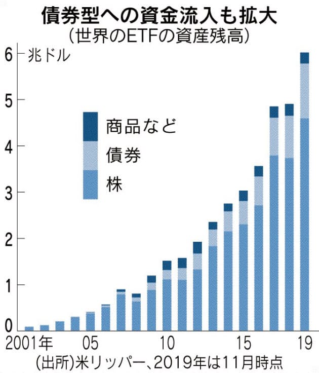 ETF、市場の主役に 資産6兆ドル、5年で2倍 - 日本経済新聞