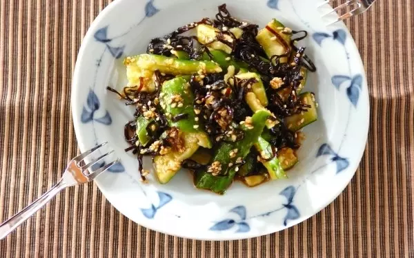 キュウリの塩昆布の旨味がしみ込んで、無限に食べられる美味しさ。ポリ袋を活用すれば、材料を入れて揉むだけで洗い物も最小限で済みます。そうめんのトッピングにしても◎。