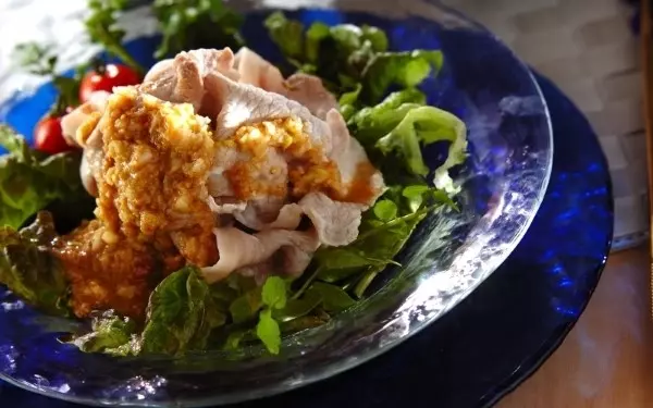 肉料理の中でもさっぱり感のある冷しゃぶサラダは暑い日でも食べやすく、冷たいそうめんともベストマッチ。特製のピリ辛ゴマダレが後引く美味しさで、食欲がないときでもペロリと食べられますよ。