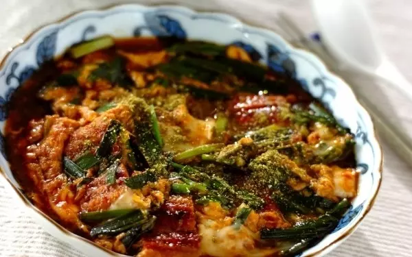 材料は豚バラ肉とモヤシとニラの3つだけ、調味料はキムチだけで味付けの失敗なし!ごま油の香りとキムチ…