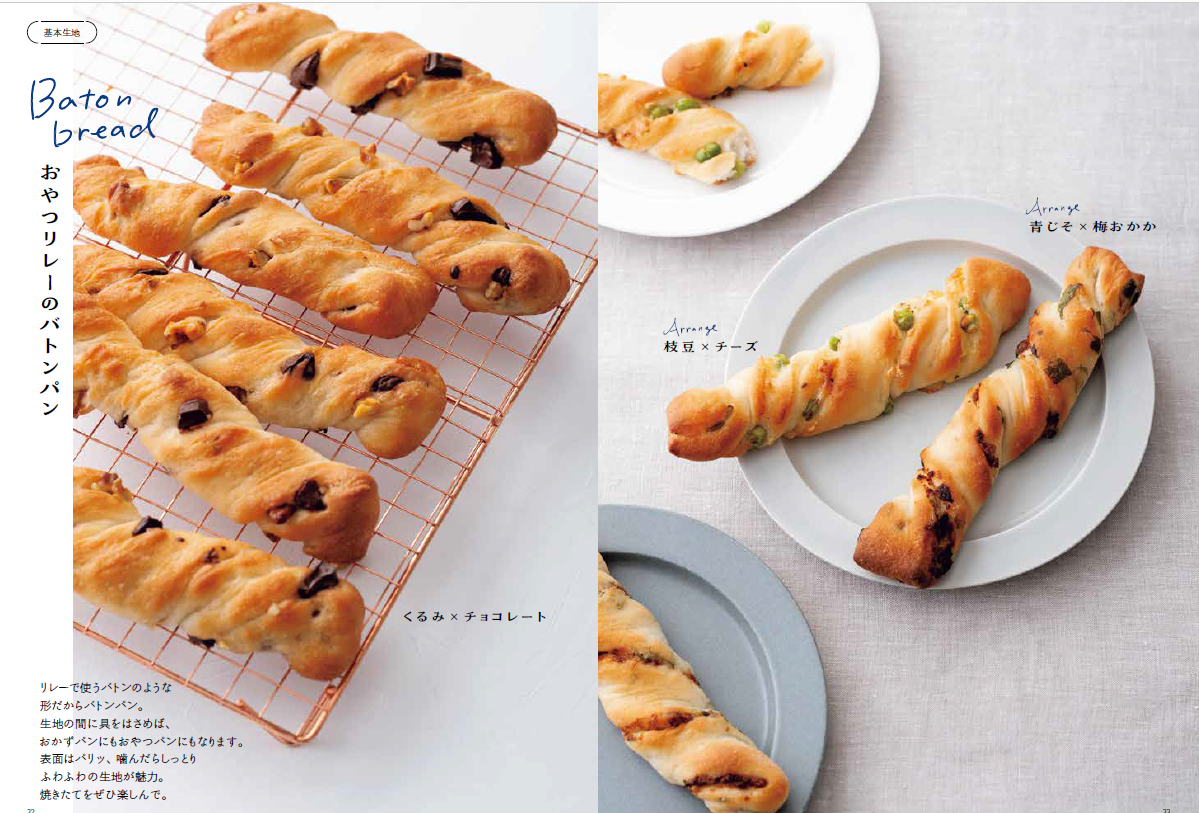 特に成形パンは、生地を1種類作ったら、そこからバトンパン、ウインナーパン、ベーコンエピ、フーガス、カルツォーネ、ピザ… と様々な形のパンへと変身。
